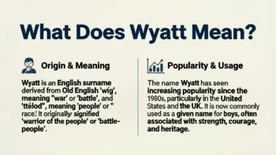 Meaning3 Min Read Stephen KingonJanuary 6, 2026 What Does Wyatt Mean? 🤔 Find Out Why Everyone’s Saying It! Have you ever been texting a friend and suddenly saw the word “Wyatt” pop up, leaving you scratching your head? 😅 That happened to me last…